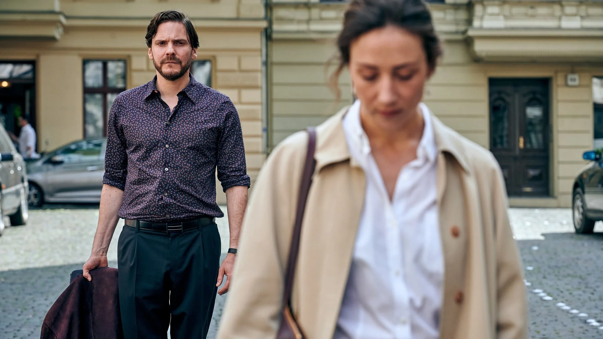 Daniel es un conocido actor que una mañana deja atrás su elegante ático en Berlín, su preciosa esposa y a la niñera que cuida de sus dos hijos pequeños para volar a Londres para el casting de una película de superhéroes. De camino al aeropuerto se acerca al bar de siempre para repasar el texto y tomar un café tranquilamente sin darse cuenta de que su vecino Bruno, al que nunca antes había visto, viene siguiéndole de cerca. En el bar, Bruno comienza a conversar con Daniel en lo que queda claro que no es un encuentro casual. El vecino de la puerta de al lado tiene información íntima sobre la vida de Daniel y su familia que hace que el encuentro se convierta en una incómoda experiencia.