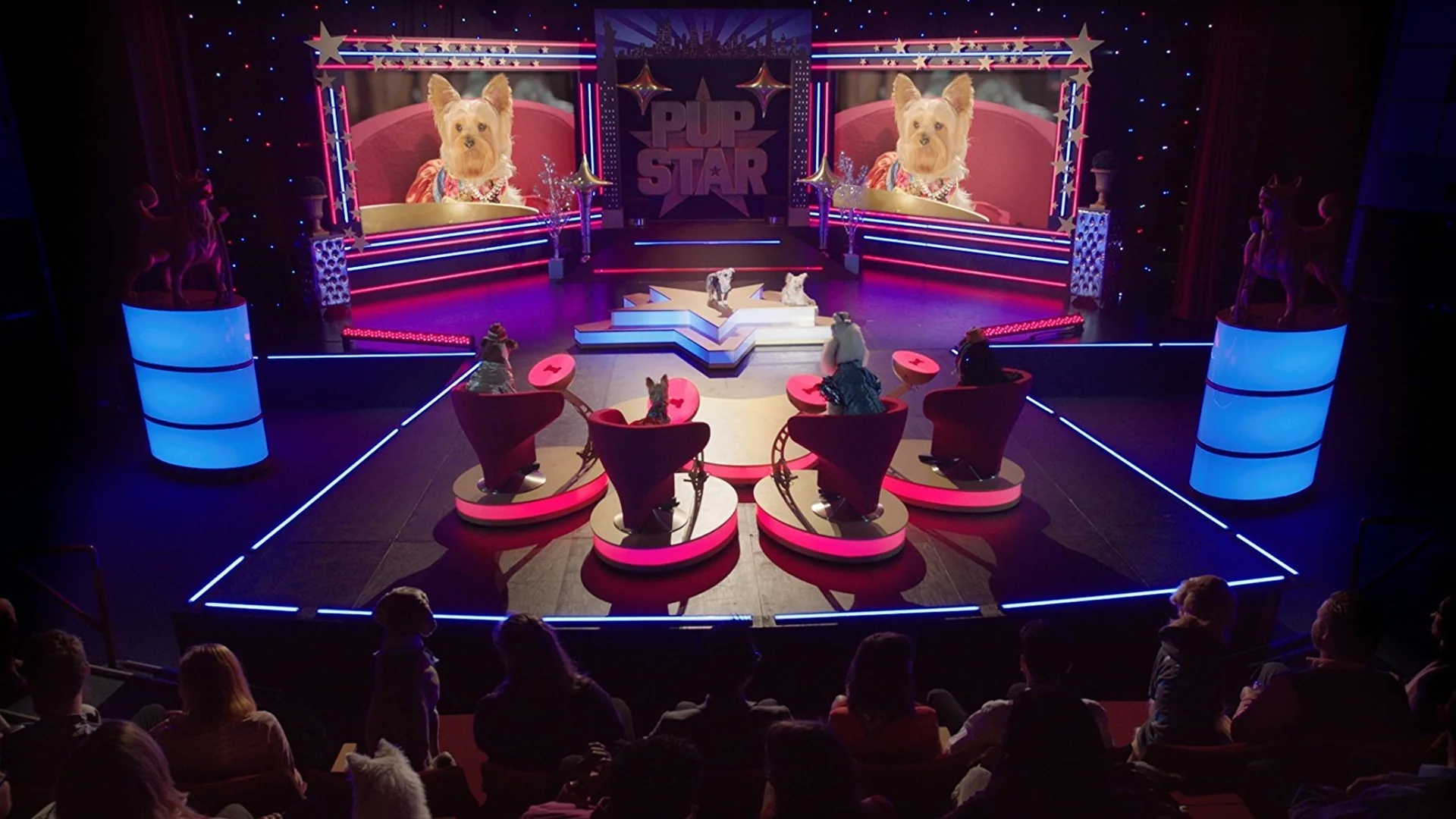 Tiny, el adorable cachorro yorkie, se convierte en un juez famoso en la inauguración de la gira mundial de Pup Star, un evento que enfrenta una grave amenaza de un trío de conspiradores.